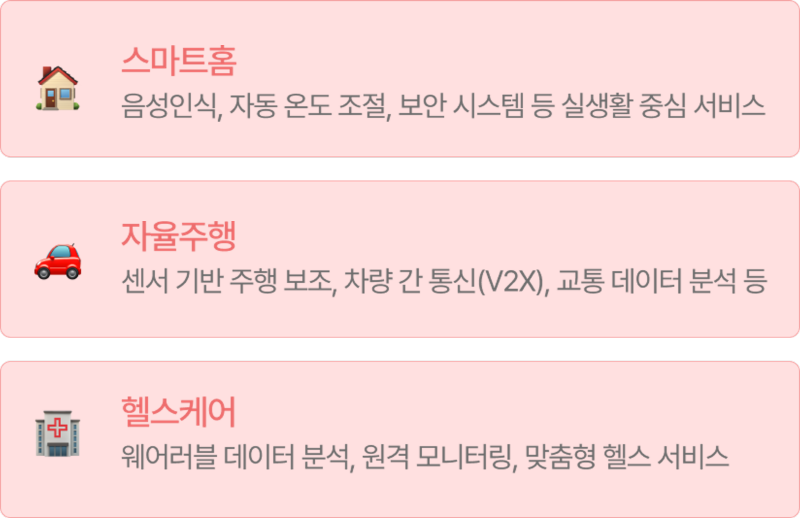 스마트홈, 모빌리티, 헬스케어, 에너지 관리 등